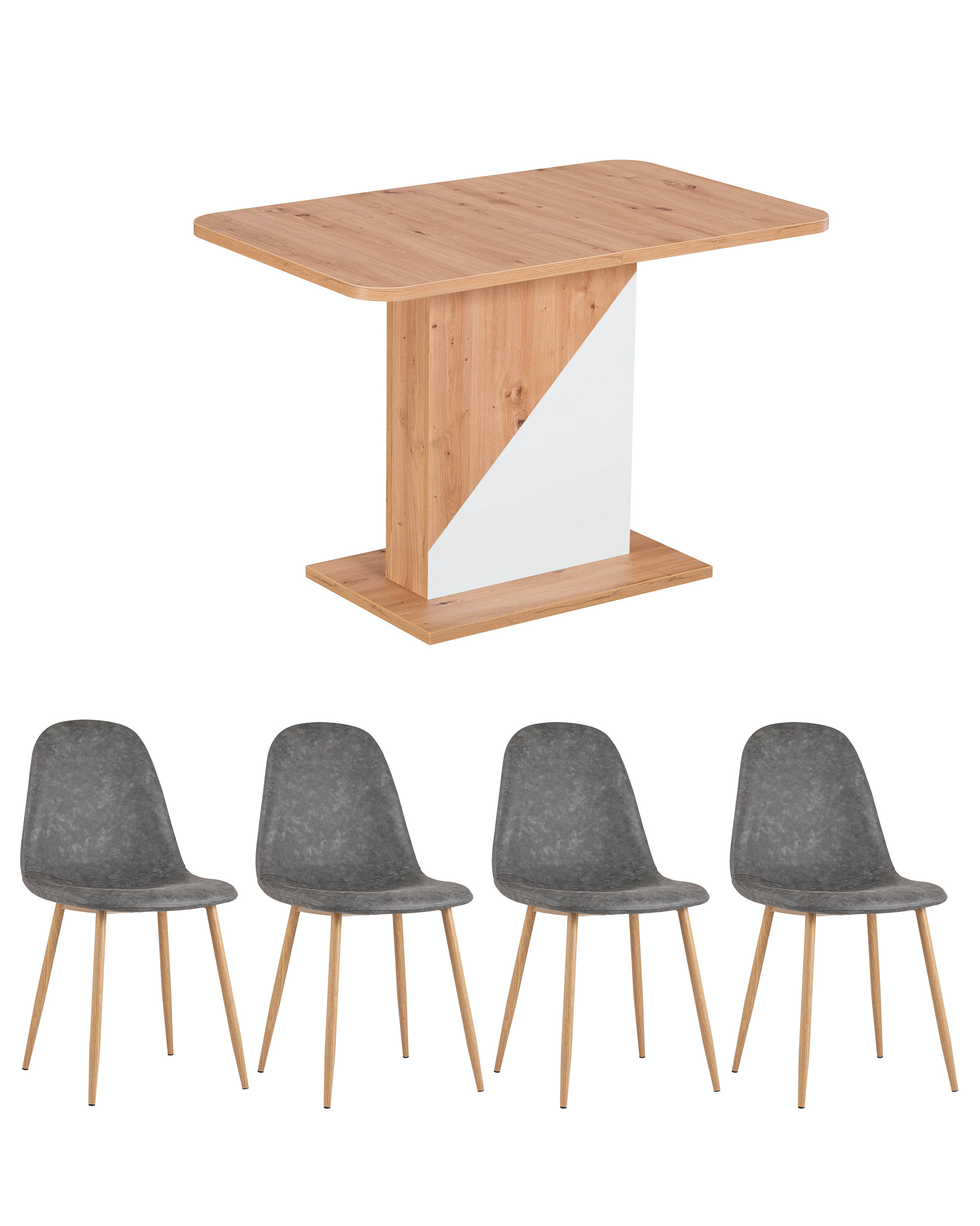 Столешница стола покрашена в цвет дуб, дополнительная вставка на столешнице и тумбе контрастная, белого цвета, что сразу привлекает внимание и придает интерьеру уникальности. В сложенном виде размеры столешницы компактные: 110*69 см. Дополнительная вставка светлого оттенка увеличивает длину столешницы до 145 см.