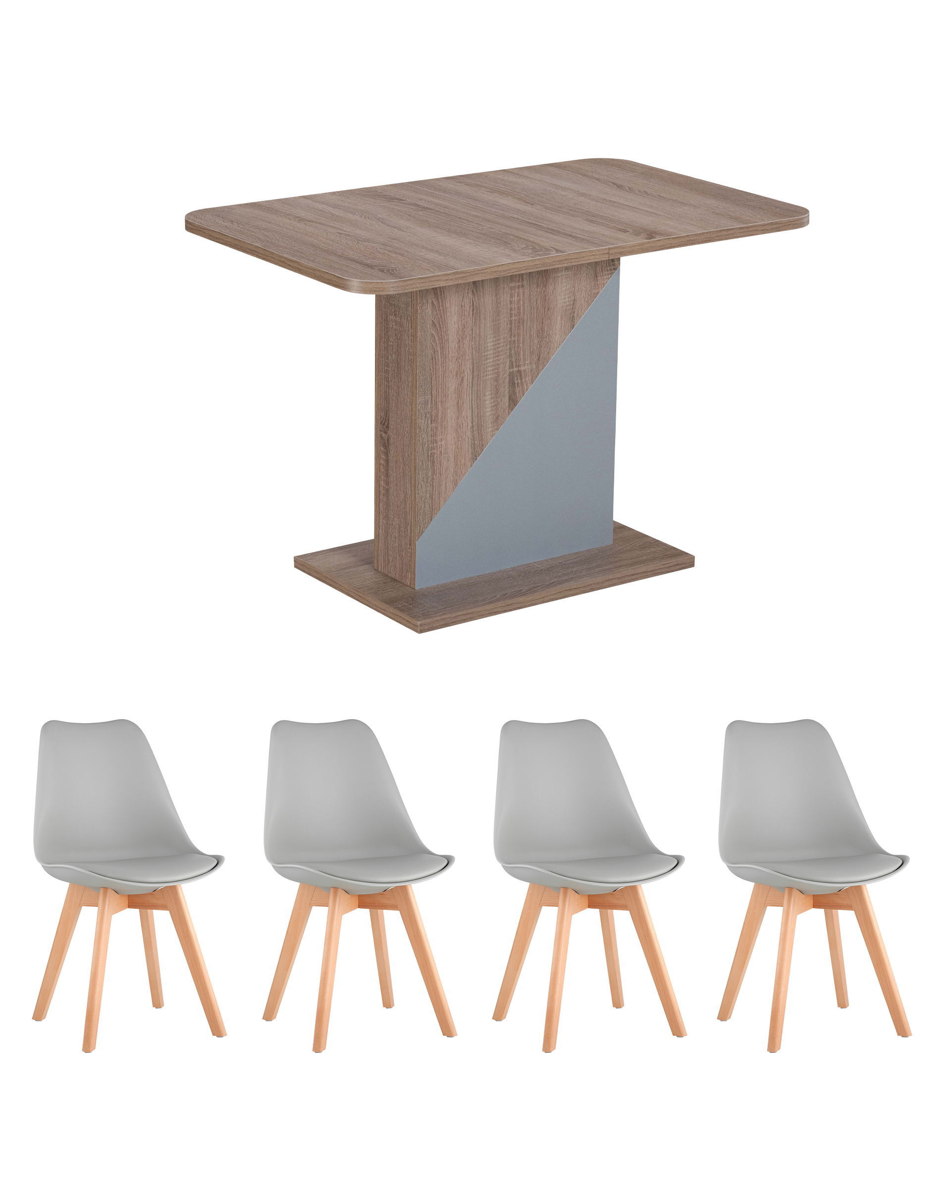 Стол комплектуется 4 стульями Frankfurt в обивке из серой экокожи.