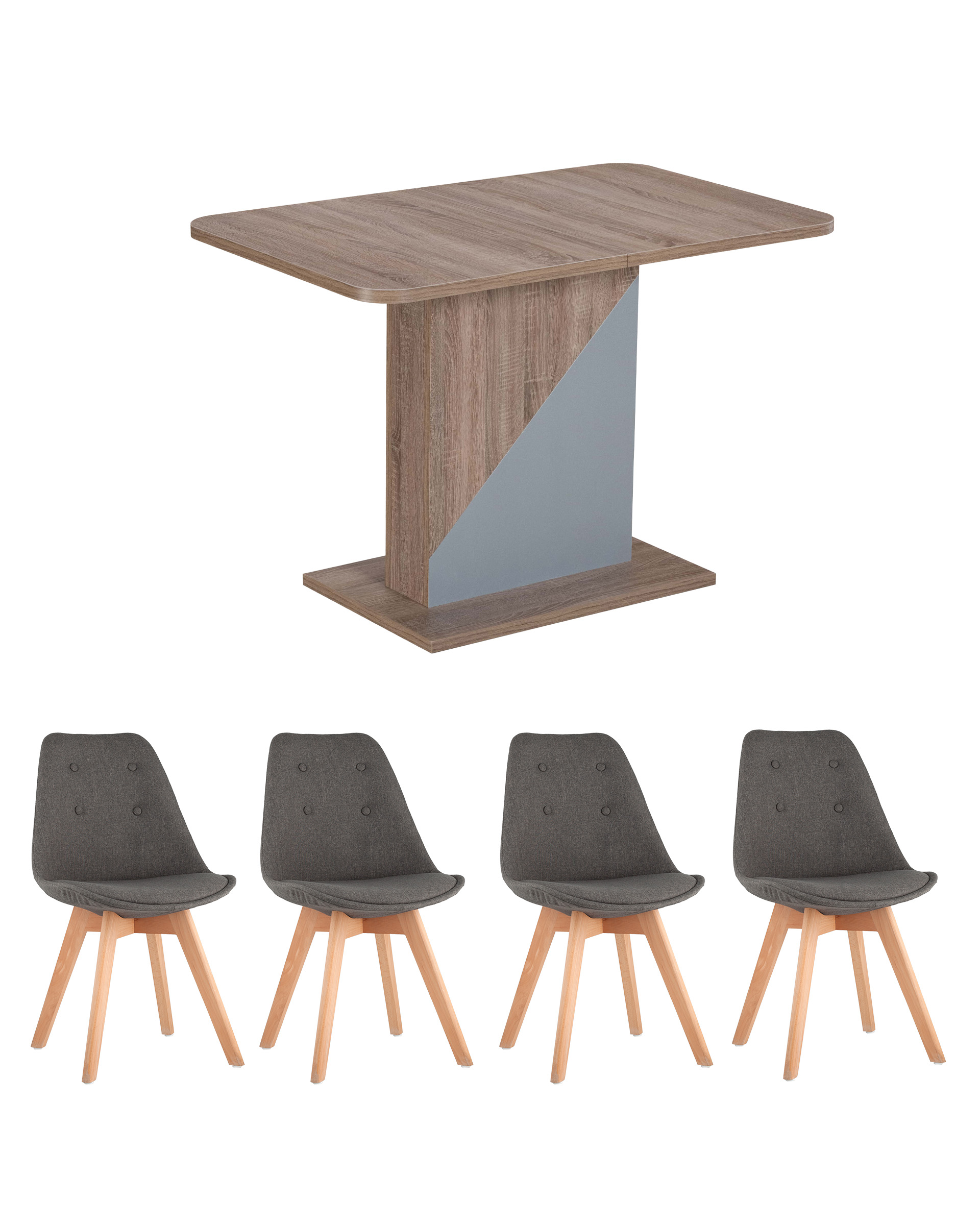 Стол оснащен синхронно-раздвижным механизмом со штопором. Разложить столешницу не составит труда даже подростку. Для того, чтобы разложить стол, достаточной потянуть за одну из половинок столешницы, вторая половинка при этом раздвинется автоматически, далее следует извлечь цельную вставку из основания стола, аккуратно уложить ее на основание, сдвинуть половинки и закрепить специальным зажимомСтол комплектуется 4 стульями Лион в обивке из шенилла. Ножки стула в цвете светлого дерева гармонируют с цветом столешницы.