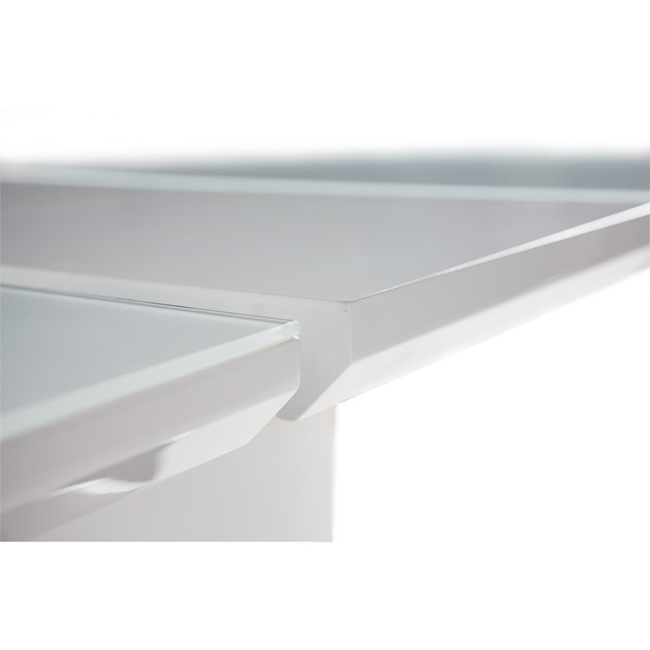 Каркас стола изготовлен из МДФ, цвет белый. Столешница стеклянная, из прочного закаленного стекла, устойчивого к царапинам.