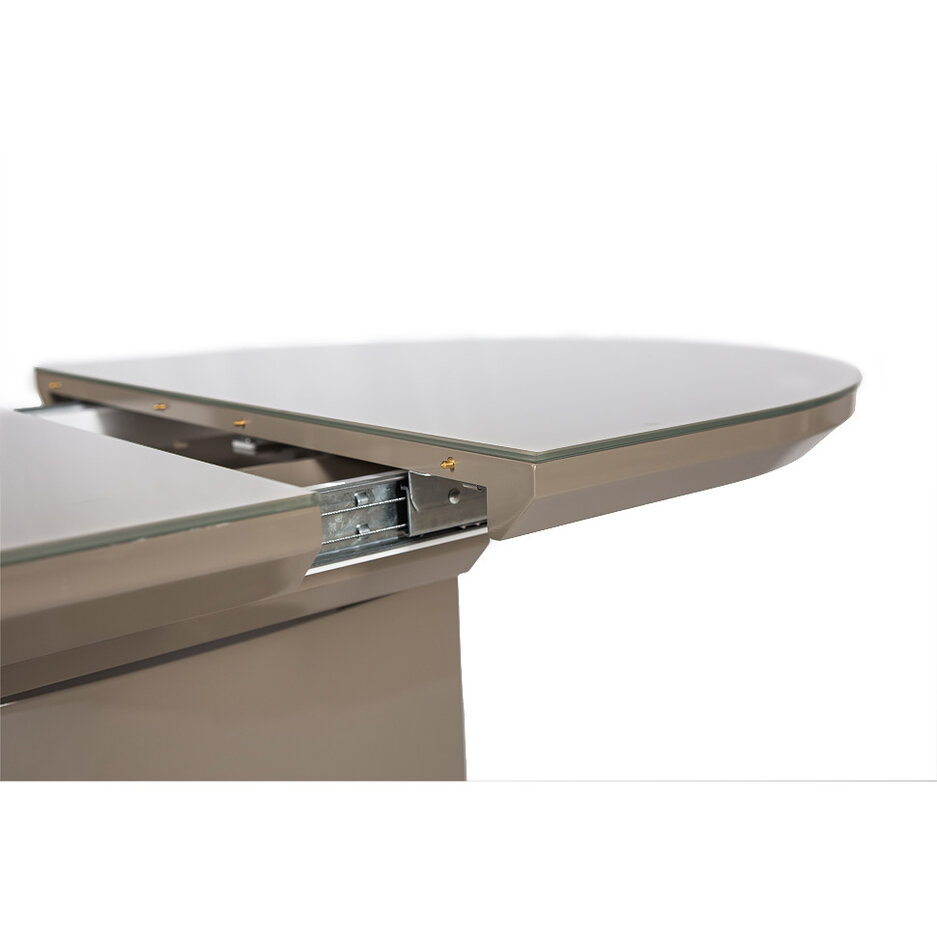 Каркас стола изготовлен из МДФ, цвет капучино. Столешница стеклянная, из прочного закаленного стекла, устойчивого к царапинам.